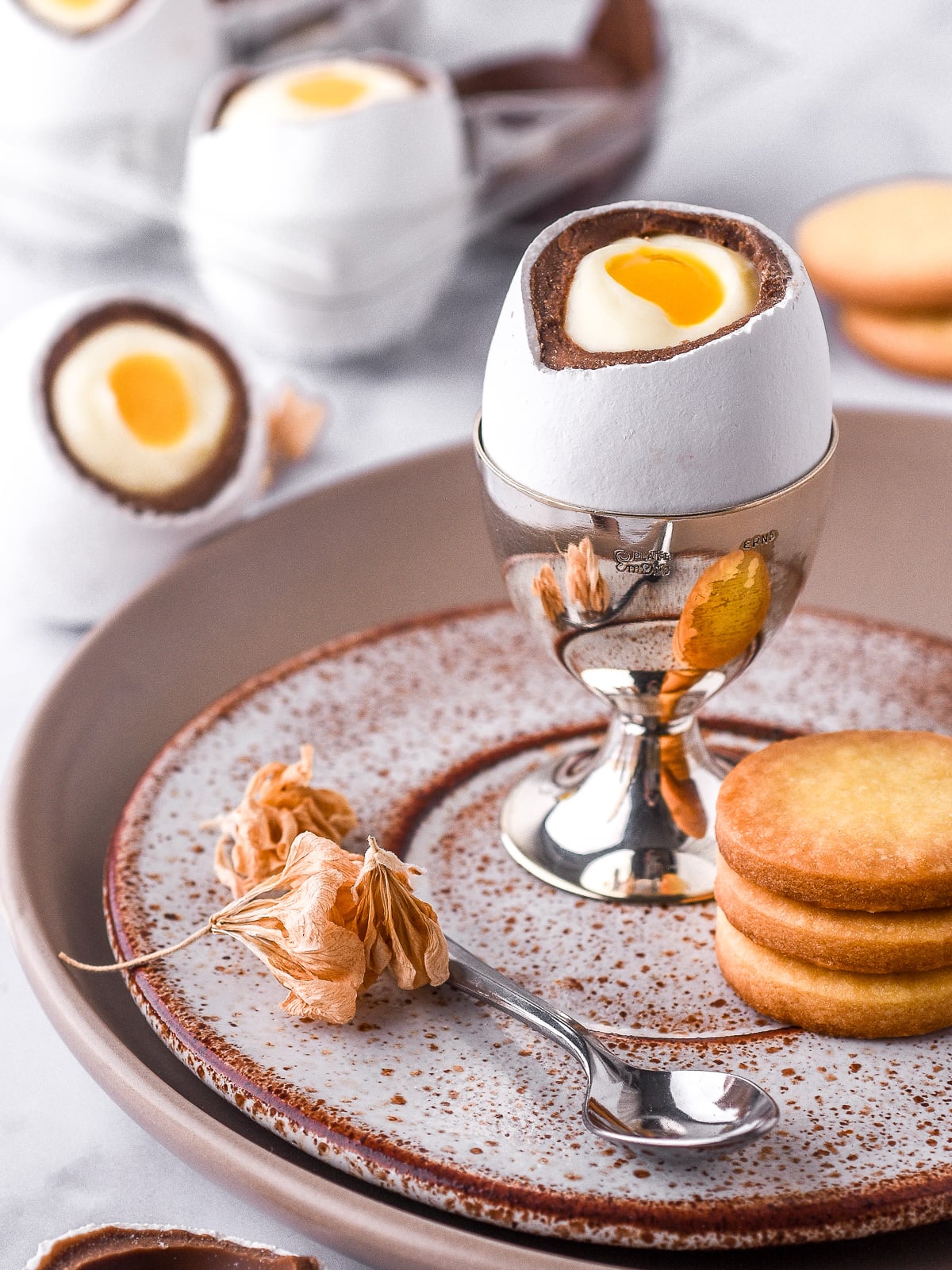 - Why I love it: I love how these cheesecake-filled chocolate eggs actually look like savoury boiled eggs! They are such a fun addition to an Easter morning breakfast. I served these eggs with mini cookies to make the perfect chocolate breakfast of boiled eggs and soldiers!
