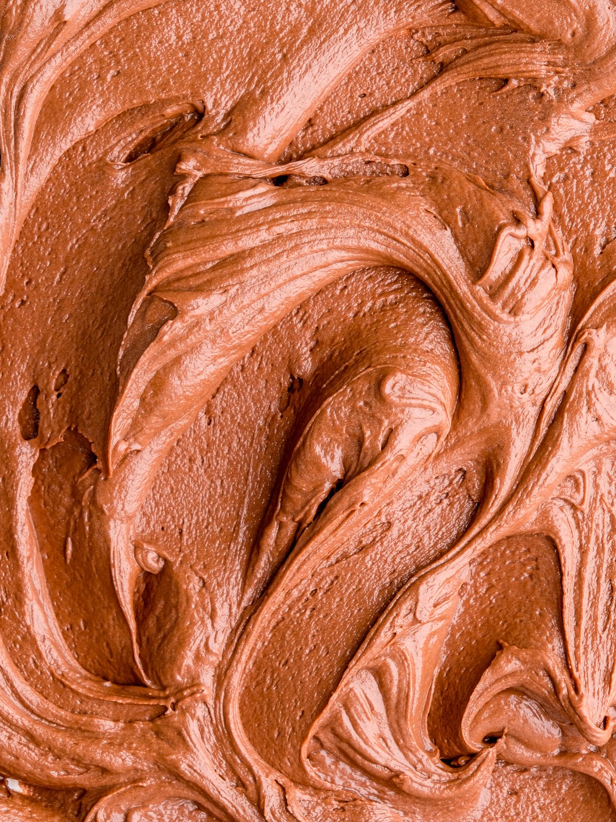 There are two things you need to pay attention to when making this frosting. Firstly, do not overheat the butter and chocolate mixture as it melts, or the chocolate will seize. Secondly, whip the frosting sufficiently while scraping down the sides of the bowl often.