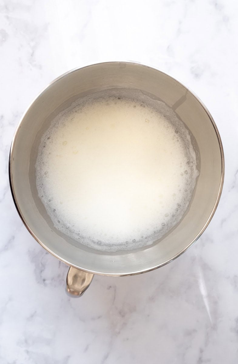 - Place the egg whites into a bowl of an electric mixer fitted with a whisk attachment. Beat at a slow speed until lots of bubbles have formed.
